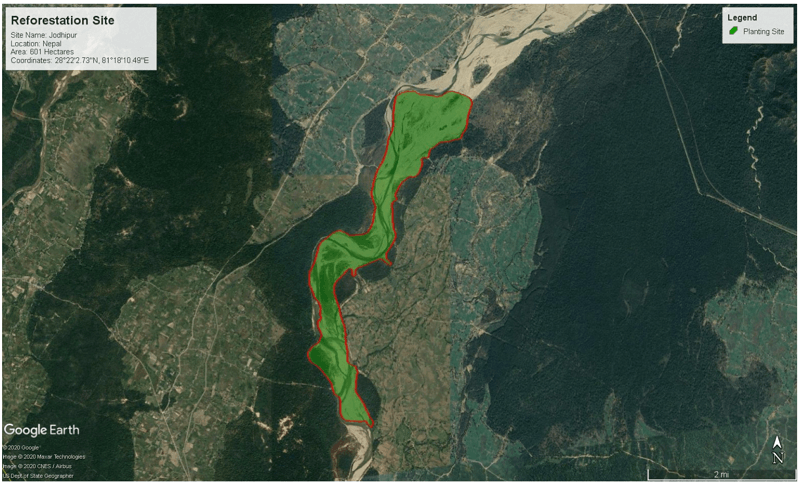 Wir haben uns für ein Anpflanzungsgebiet in Nepal entschieden. Auf einer Fläche von 600 Hektar haben wir bereits 66.000 Bäume gepflanzt. Dafür haben wir ein extra für unsere Bäume begrenztes Gebiet, auf dem all die Bäume gepflanzt werden.