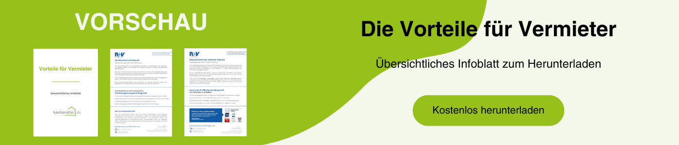 Wir haben Ihnen alle Vermieter-Vorteile in einem übersichtlichen Infoblatt zusammengefasst. Drucken Sie es einfach aus und übergeben Sie es ihm, wenn Sie mit ihm darüber sprechen, welche Mietsicherheit er sich wünscht oder nehmen Sie es gleich zur Wohnungsbesichtigung mit.