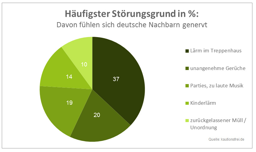 Der Großteil der Deutschen verteilt sich auf über 20 Millionen Wohnungen (Quelle: statista) in Mehrfamilienhäusern. Wo Menschen mit verschiedenen Lebensweisen aufeinandertreffen, sind Meinungsverschiedenheiten unvermeidbar, die nicht selten in handfeste Streitereien ausarten. Die plusForta GmbH, Anbieter der beliebten Mietkautionsbürgschaft kautionsfrei.de, hat seine fast 40.000 Facebook-Fans gefragt, was sie an ihren Nachbarn am meisten nervt und Anlass für derartige Auseinandersetzungen gibt.